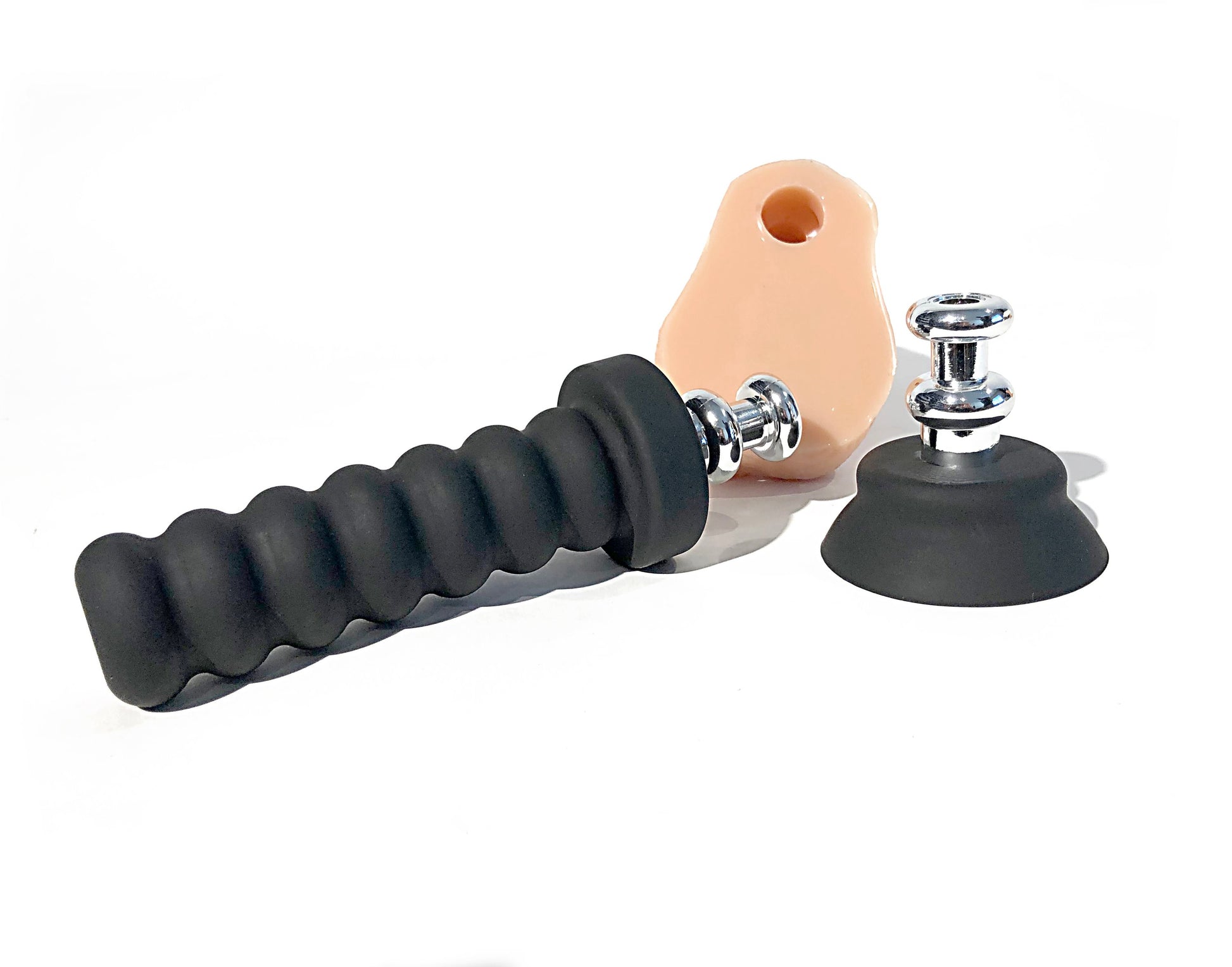 The X-Treme Grip Interlocking System, allows the user to choose from a silicone handle or suction cup base for loads of hands-free fun.